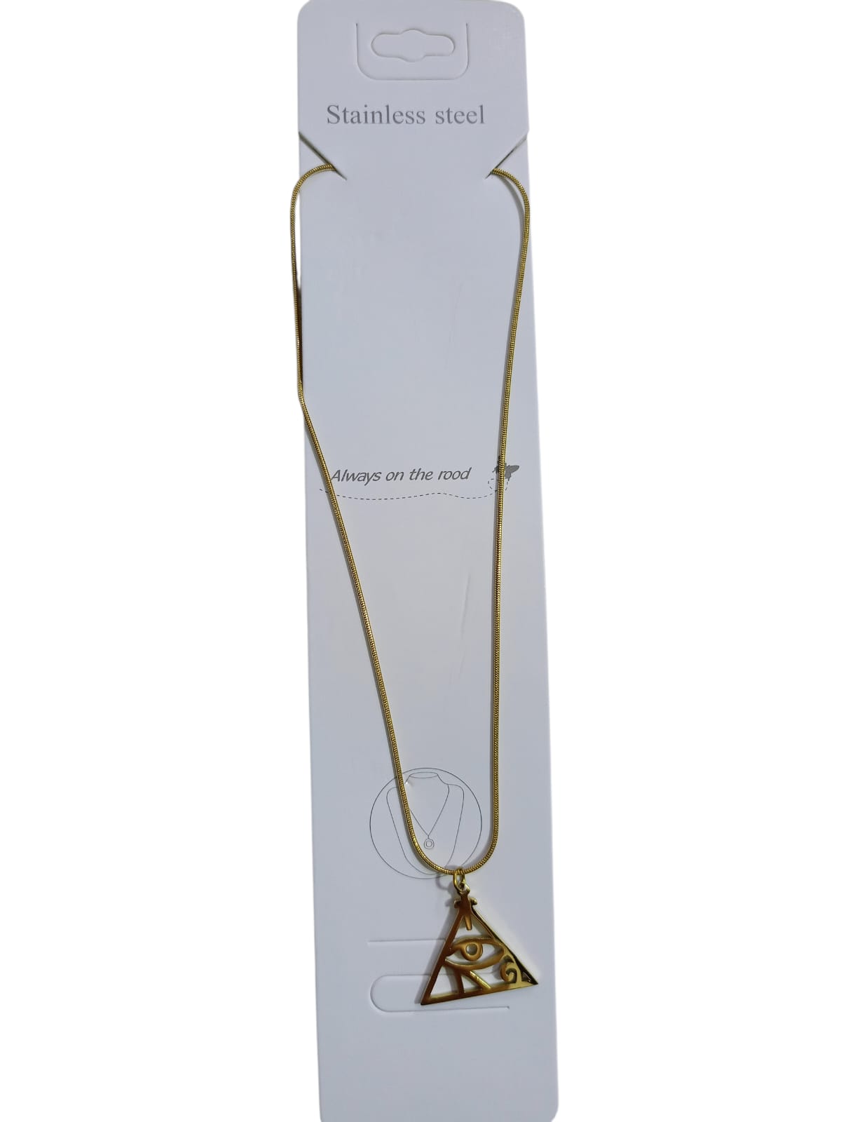 إذا كنت تبحث عن إكسسوار يجمع بين الطابع الفرعوني الرمزي واللمسة العصرية البسيطة، فهذه السلسلة خيار قوي لإضافتها على الويب سايت. المنتج عبارة عن سلسلة ستانلس ستيل بتصميم “سنيك” ناعم ولامع، مع تعليقة مميزة على شكل مثلث يتوسطه رمز “عين حورس” بأسلوب هندسي أنيق. الشكل العام للقطعة ملفت بدون مبالغة، ويعطي إحساس بالفخامة والتميز، خصوصًا لمحبي الإكسسوارات ذات المعنى والهوية.