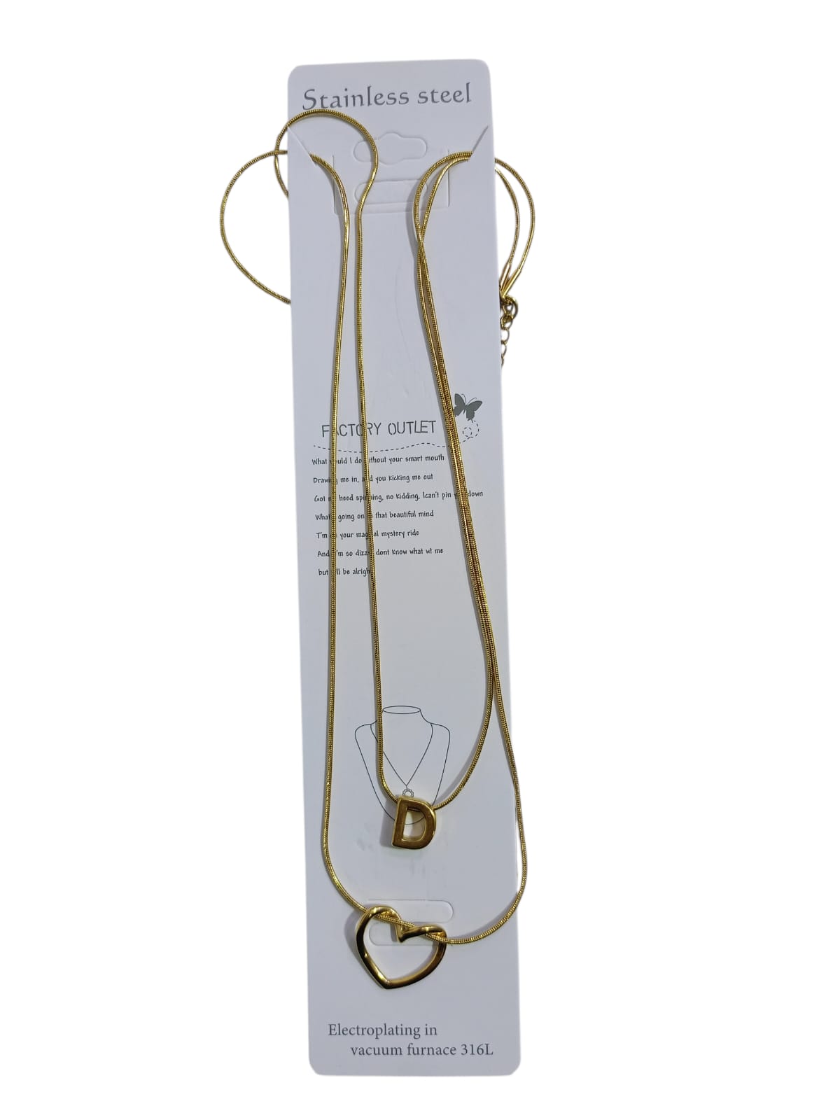 • طبقة أقصر أو متوسطة عليها حرف D، وده يخليها قطعة شخصية جدًا—خصوصًا لو الاسم يبدأ بحرف D أو لو حابة تلبسي حرف يرمز لاسم شخص قريب منك.