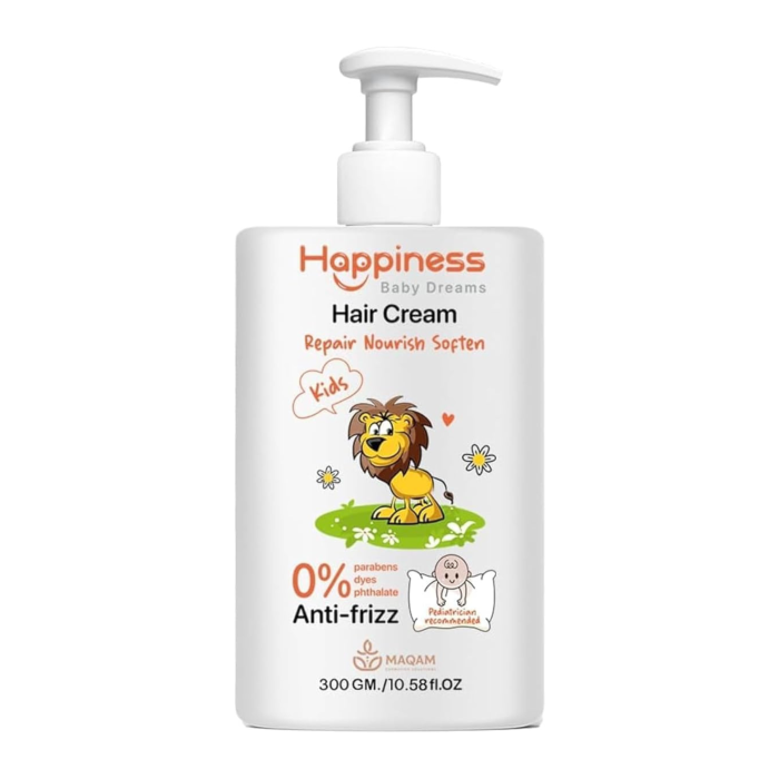 يتميز هابينس كريم للشعر بتركيبة خفيفة وآمنة تناسب فروة رأس الأطفال الحساسة. فهو غني بمكونات مرطبة تساعد على الحفاظ على توازن رطوبة الشعر دون التسبب في تهيج أو ثقل على الخصلات. كما أن تركيبته خالية من المواد القاسية التي قد تؤثر على صحة الشعر أو تسبب جفافه مع الاستخدام المتكرر، ما يجعله مناسبًا للاستخدام اليومي بعد الاستحمام أو قبل التصفيف.